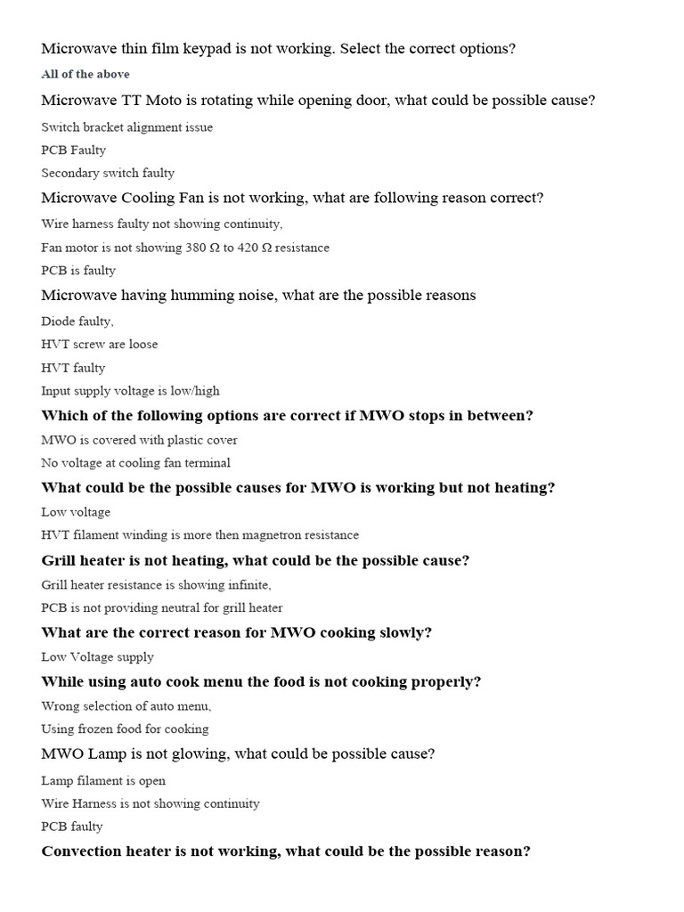 Microwave Thin Film Keypad Is Not Working PDF